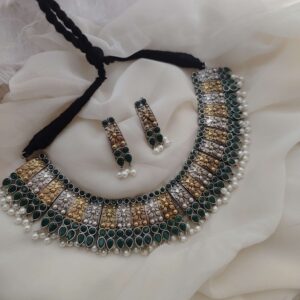 SANDHYA Two Tone Choker Necklace Earrings Set