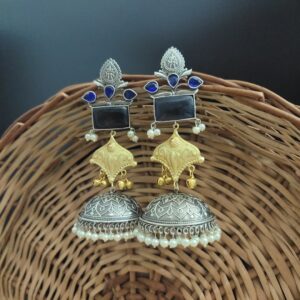 SHANAYA Silver Replica Two tone Jhumka Earrings