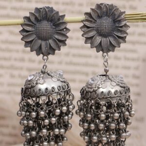 Seher Oxidised Silver Banjara Jhumka Earrings for Women Girls