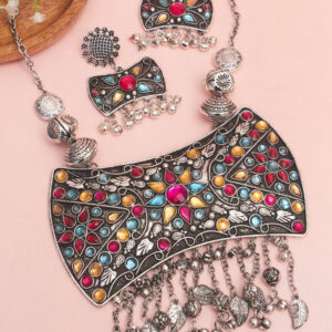 Sanaira big pendant Oxidised Necklace Set