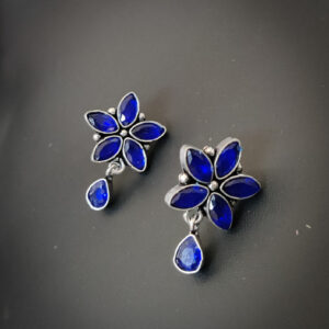 Semi Precious Stone Blue Flower Stud Earrings