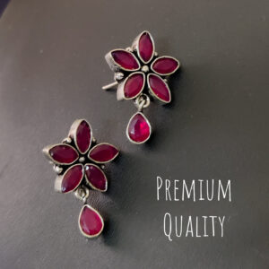 Semi Precious Stone Black Flower Stud Earrings
