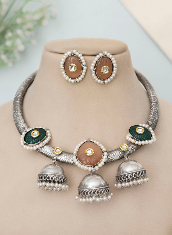 Oxidised jewelry refers to pieces that have undergone a chemical process to drken the metal, typically silver, to give it an aged or antique appearance. Oxidised jewelry requires special care to maintain its appearance. it’s recommended to store oxidised jewelry in a dry place away from direct sunlight and to avoid exposing it to harsh chemicals or abrasive materials when cleaning.Despite their vintage appearance, oxidised earrings can be remarkably versatile. They can complement a wide range of styles, from bohemian and casual to formal and ethnic, making them suitable for various occasions