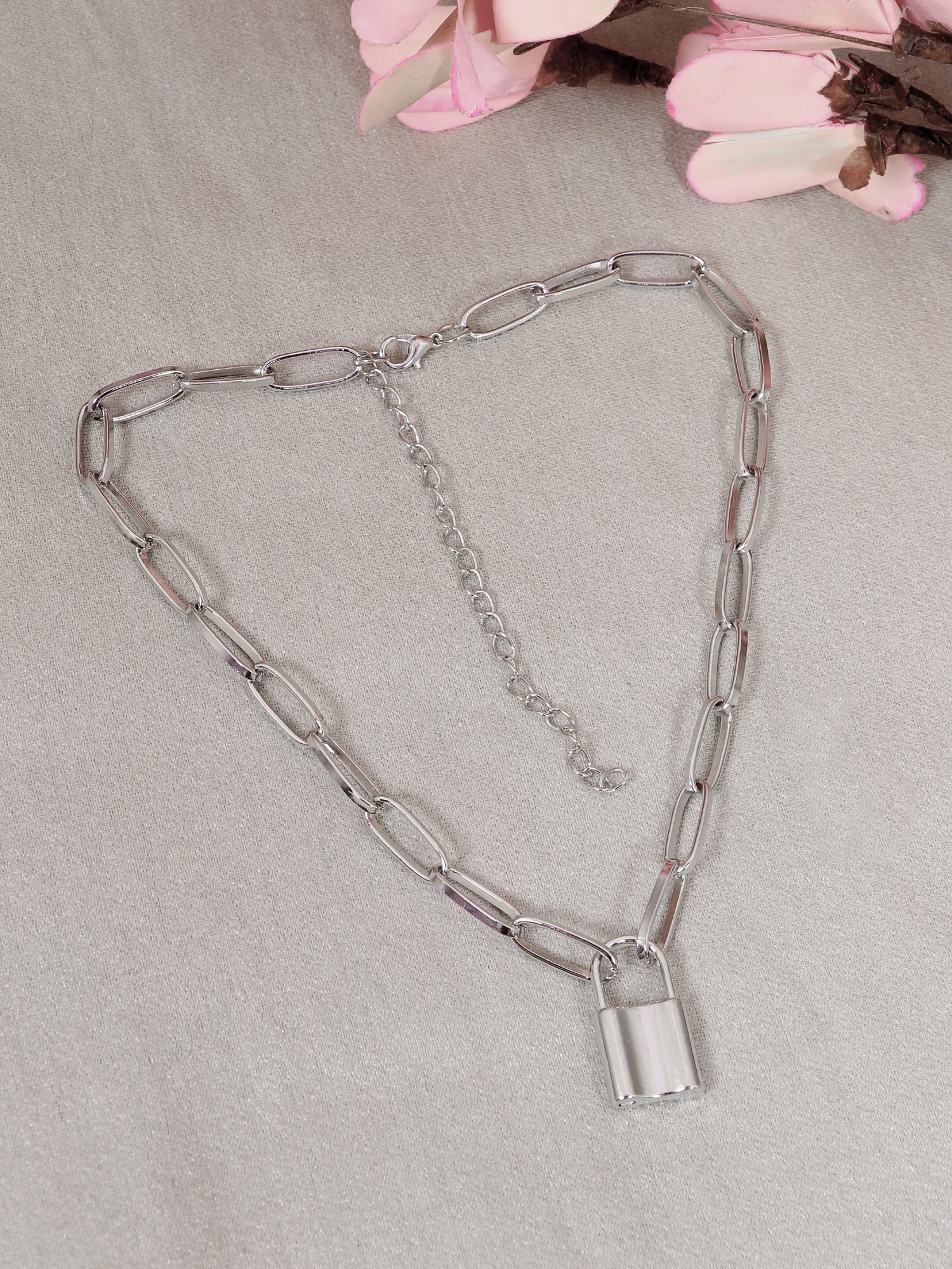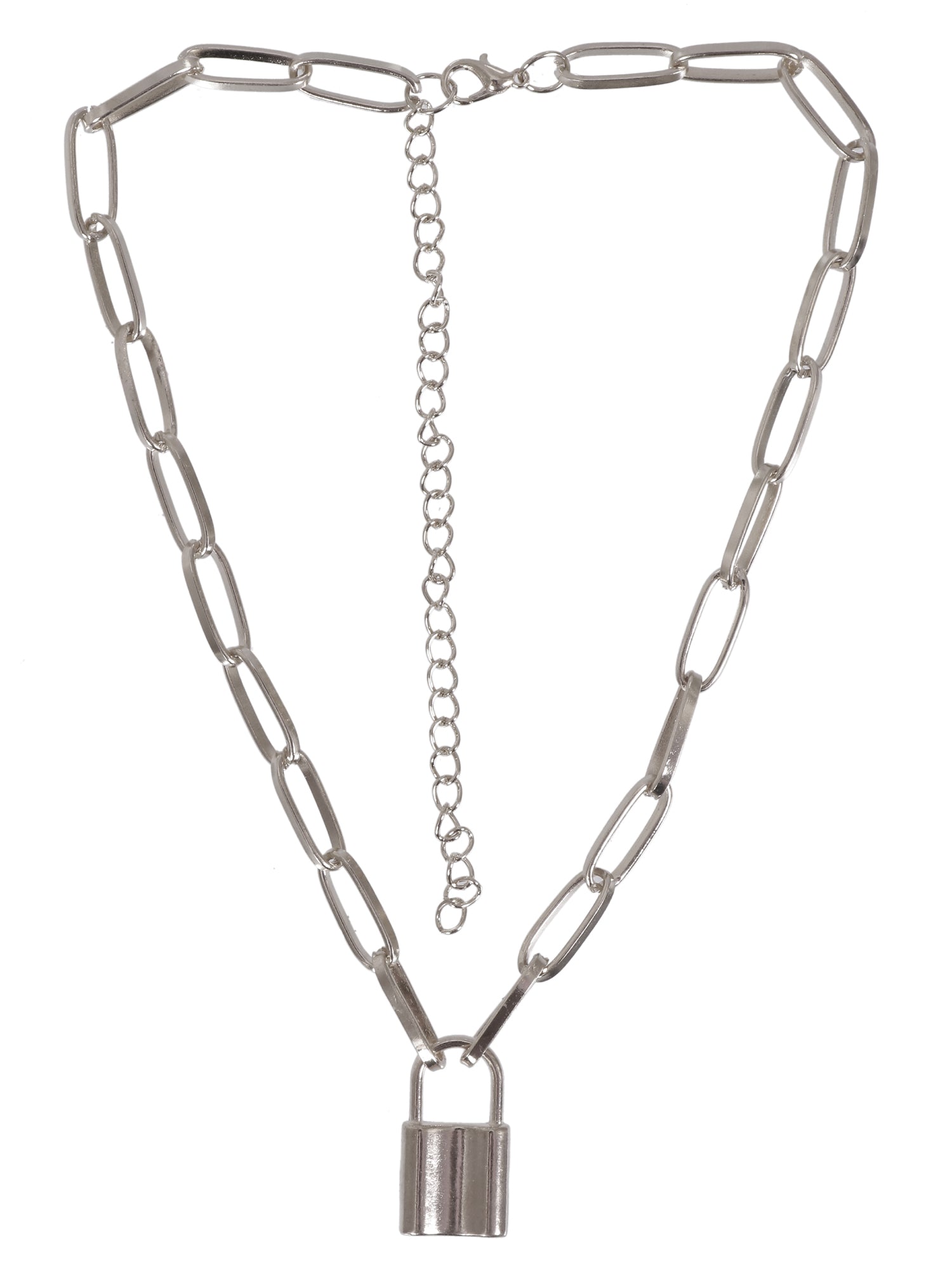 Crunchy Fashion Oxidised Silver Trending Lock Inspired Layered Necklace