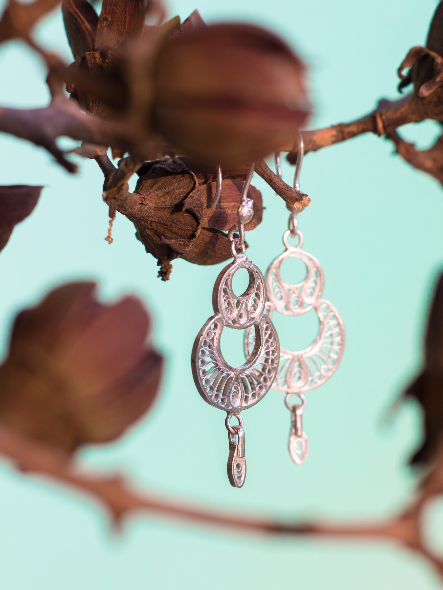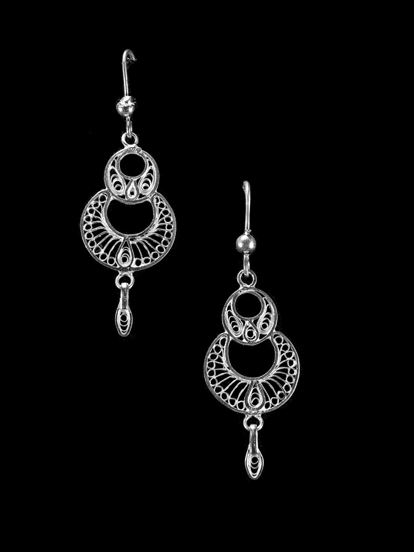 This is a beautiful and elegant Silver Filigree Earring that has been oxidized. The danglers have been carefully handcrafted by our artisans. Wear it and carry the tradition of silver filigree with you…!!!