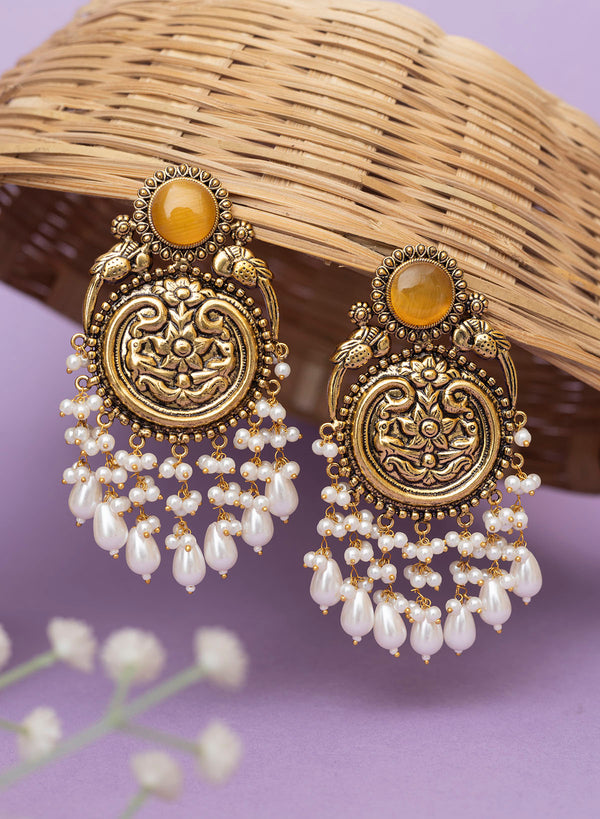 Oxidised jewelry refers to pieces that have undergone a chemical process to darken the metal, typically silver, to give it an aged or antique appearance. Oxidised jewelry requires special care to maintain its appearance. it’s recommended to store oxidised jewelry in a dry place away from direct sunlight and to avoid exposing it to harsh chemicals or abrasive materials when cleaning.Despite their vintage appearance, oxidised earrings can be remarkably versatile. They can complement a wide range of styles, from bohemian and casual to formal and ethnic, making them suitable for various occasions.