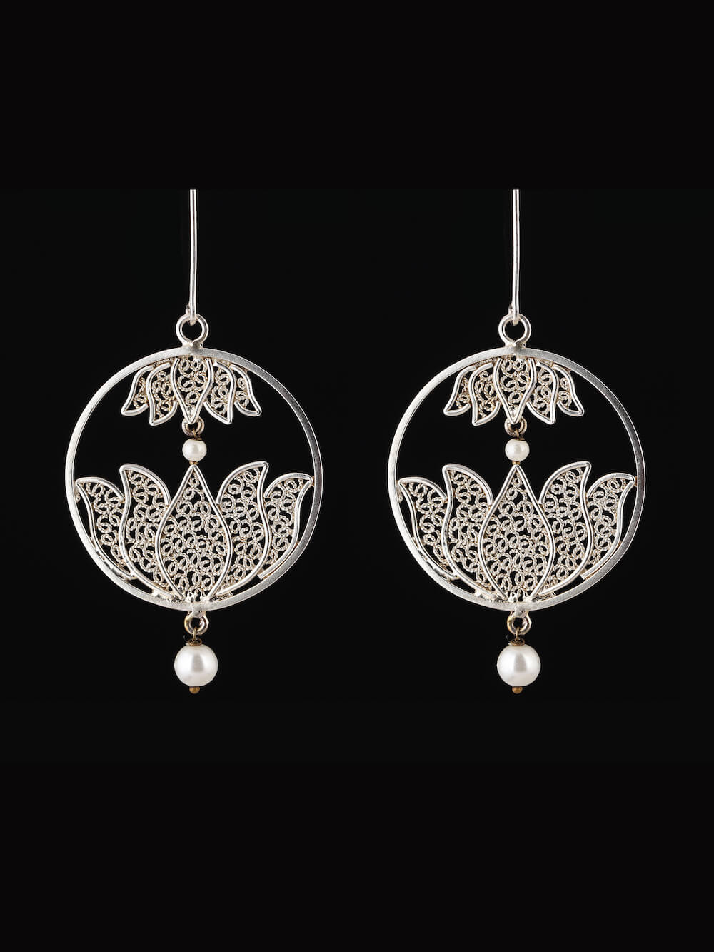 These unique pair of earrings draw inspiration from the organic shape of Lotus flower. This is an attempt to create a statement earring that keeps our roots alive. It is quintessentially feminine !!!