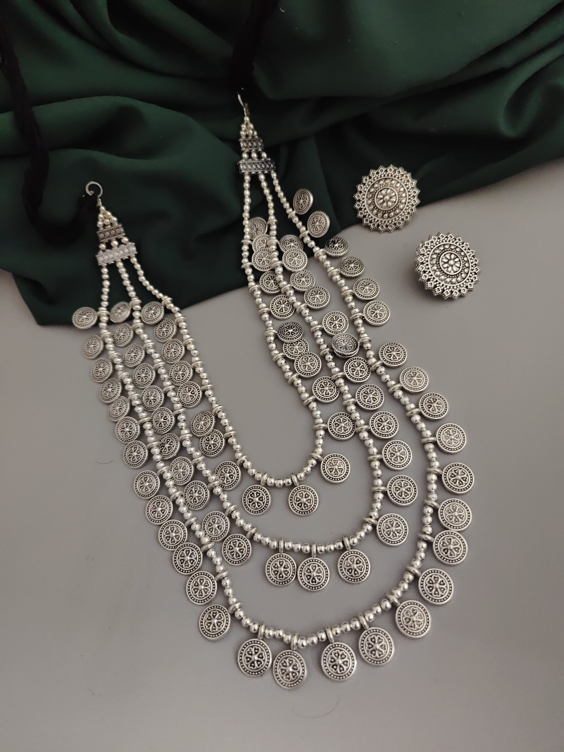 Oxidised 3 layer Necklace Earrings Set