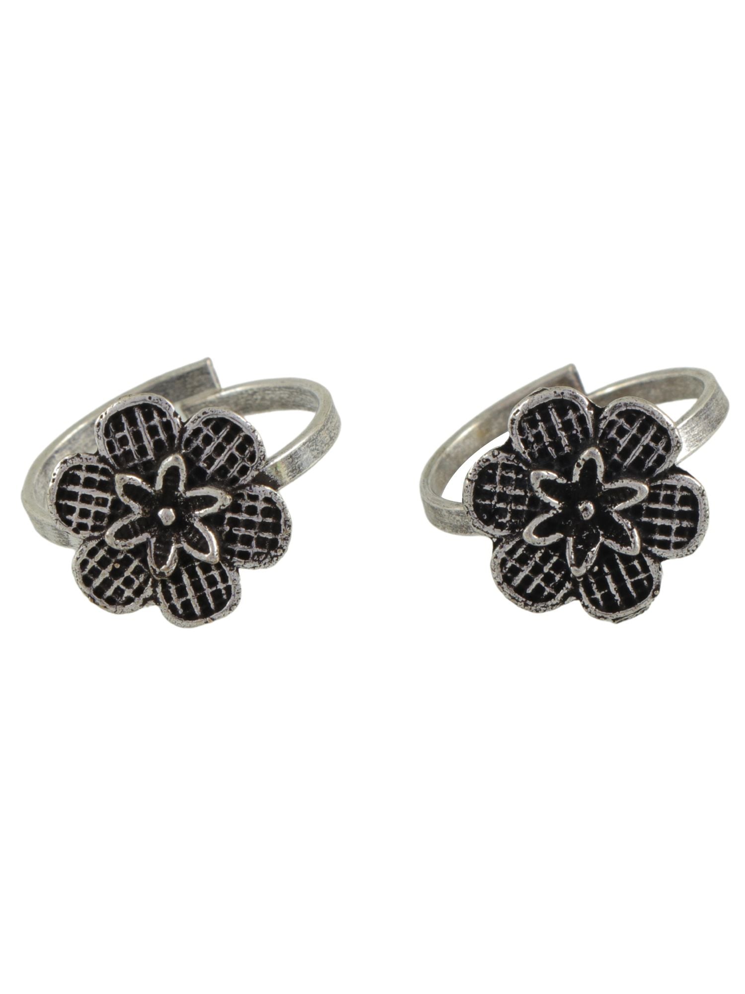 Compliment your femininity in these Silver Oxidised Toe Rings for Women. Crafted with fine alloy, these toe rings are designed in a unique Flower pattern with an Oxidised finish. These toe rings are perfect for everyday glam or festivals and can be worn with any casual or formal outfit. Perfect gift for women of all ages, surprise your loved ones with these beautiful toe rings and let them flaunt it with joy.