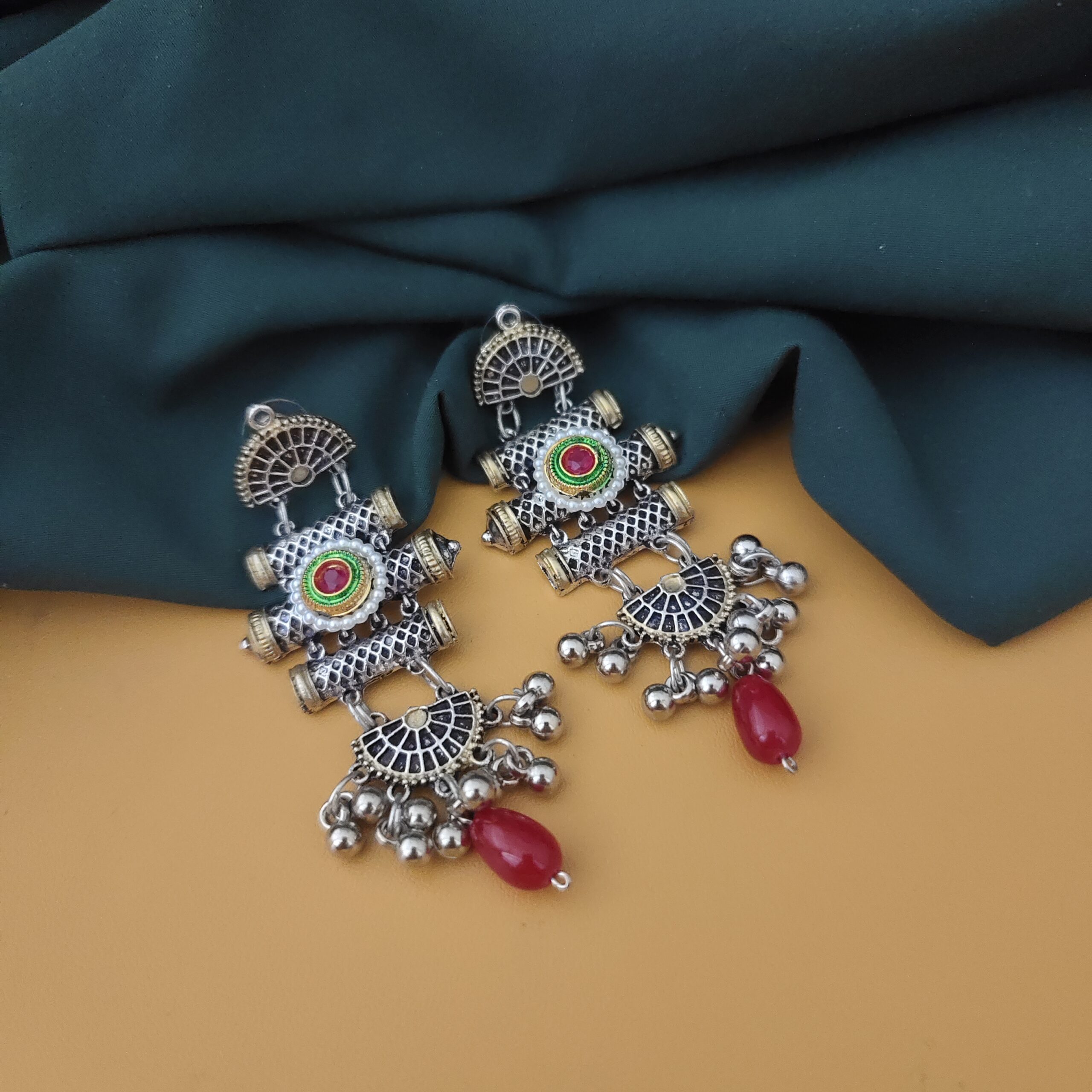 Elevate your style with these stunning Oxidised Two Tone Earrings. These earrings feature a unique combination of oxidized silver and gold tones, creating a bold and eye-catching look. The intricate detailing and textured finish add a touch of elegance to these statement earrings, making them perfect for both casual and formal occasions. The lightweight design makes them comfortable to wear all day long, while the secure hook closures ensure they stay in place. Add a touch of sophistication to any outfit with these beautiful Oxidised Two Tone Earrings.