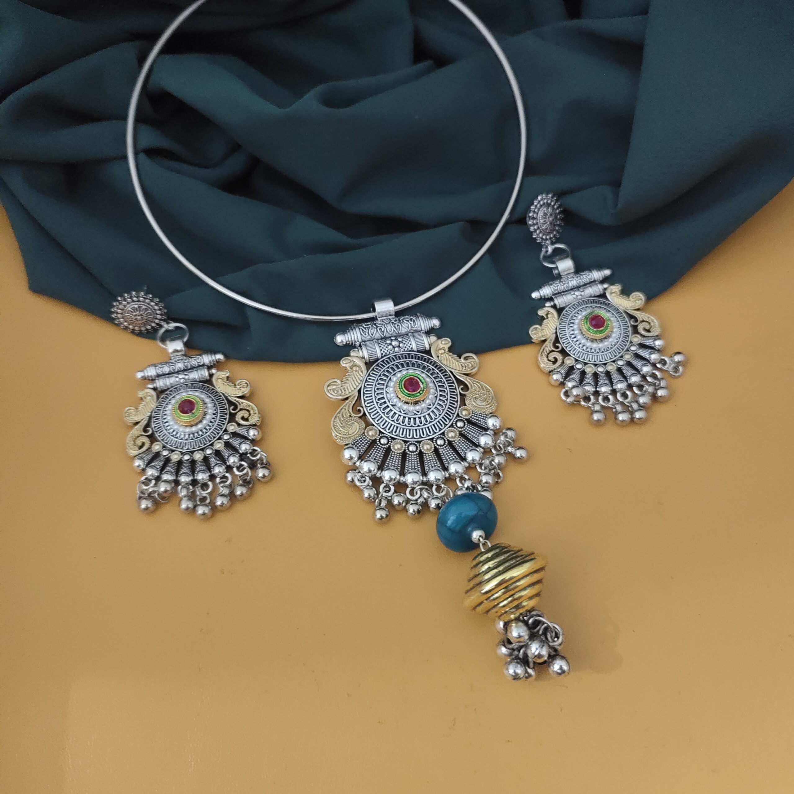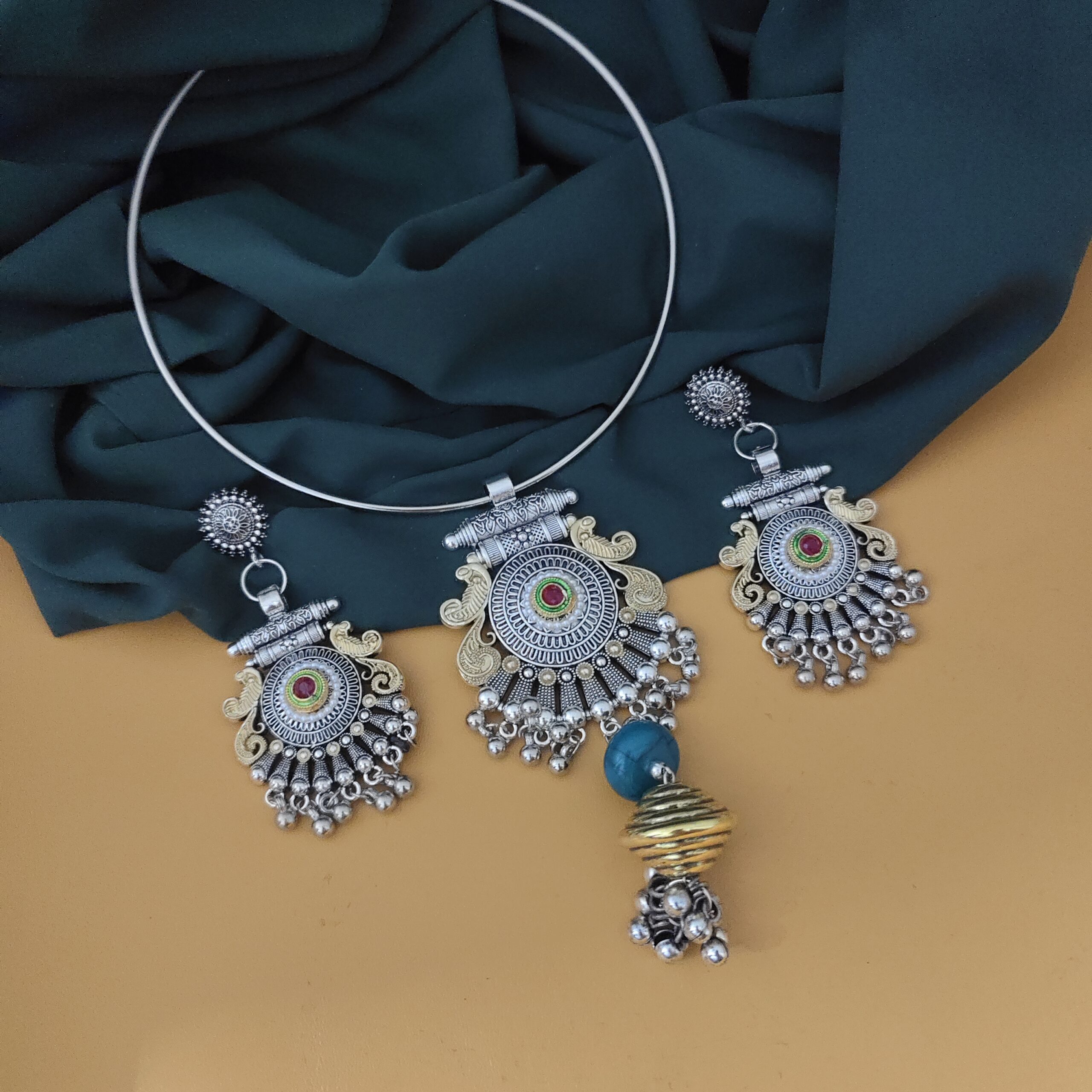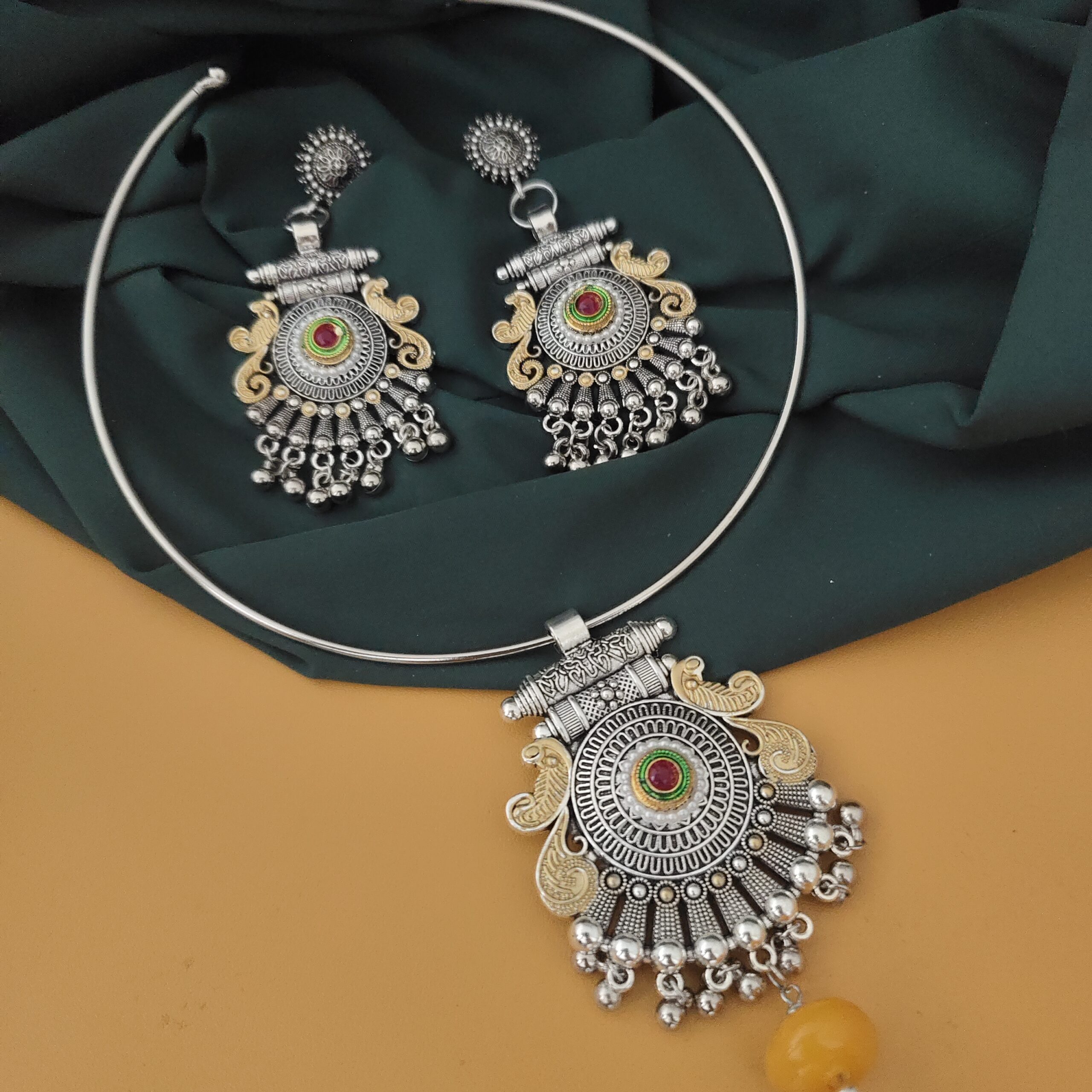 Oxidised Two Tone Hasli Necklace Earrings Set-1