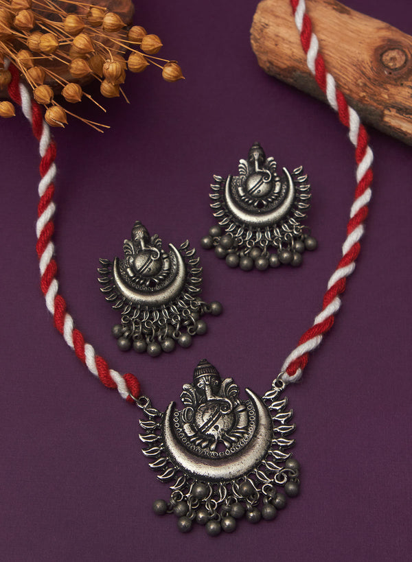 Styling oxidized jewellery can add a touch of charm and uniqueness to your overall look. The lightweight design makes it a comfortable and a stylish addition to any ensemble. Style this oxidised pendant necklace set effectively this FESTIVE season like rakhi, durga pooja, navratri, diwali.