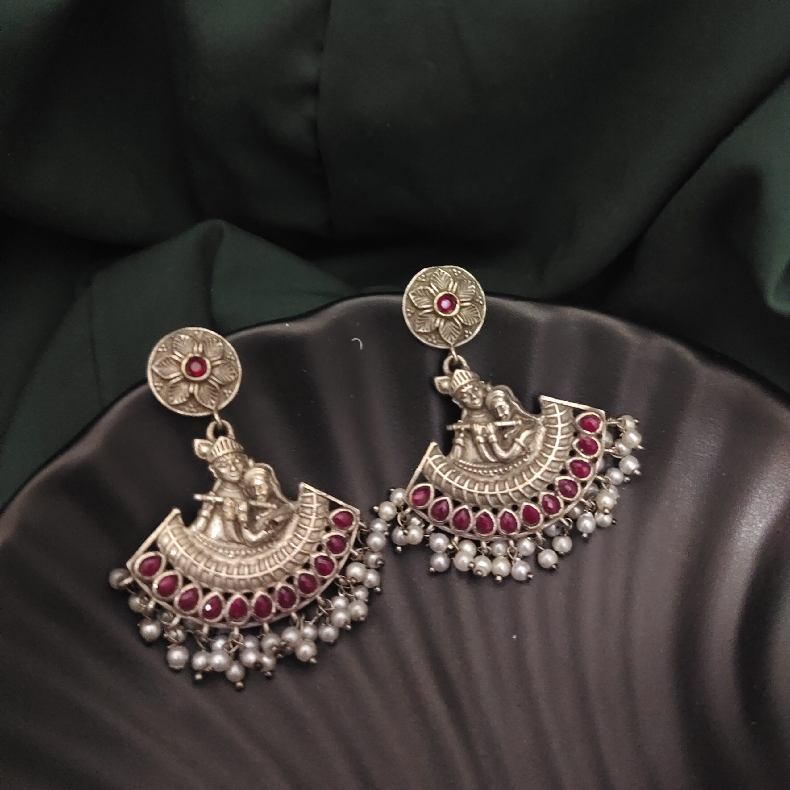 Looking for a statement piece to add to your jewelry collection? Look no further than these stunning RadheKrishna Dangler Silver Replica Earrings. Each earring features a beautiful replica of RadheKrishna in intricate detail, suspended from a delicate silver hoop. The high-quality sterling silver construction ensures durability and long-lasting shine, making these earrings the perfect addition to any outfit. Whether you’re dressing up for a special event or just looking to elevate your everyday style, these RadheKrishna Dangler Earrings are sure to turn heads and spark conversations. Add a touch of spirituality and elegance to your look with these exquisite silver earrings.