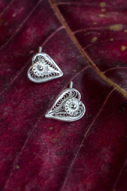 Silver Linings Heart Silver Filigree Handmade Studs Earrings