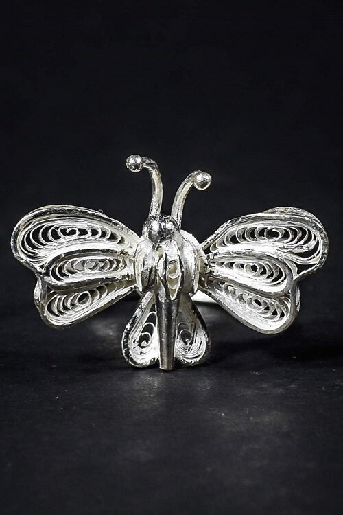 Add a unique touch to your attire with this Silver Titli Statement Ring. The Silver filigree Ring is handmade in Cuttack in the fine art of Filigree. The ring is inspired by the butterflies. The ring is light weight and look absolutely stunning! If you love butterflies, this ring is for you! The ring is made with Silver wires.