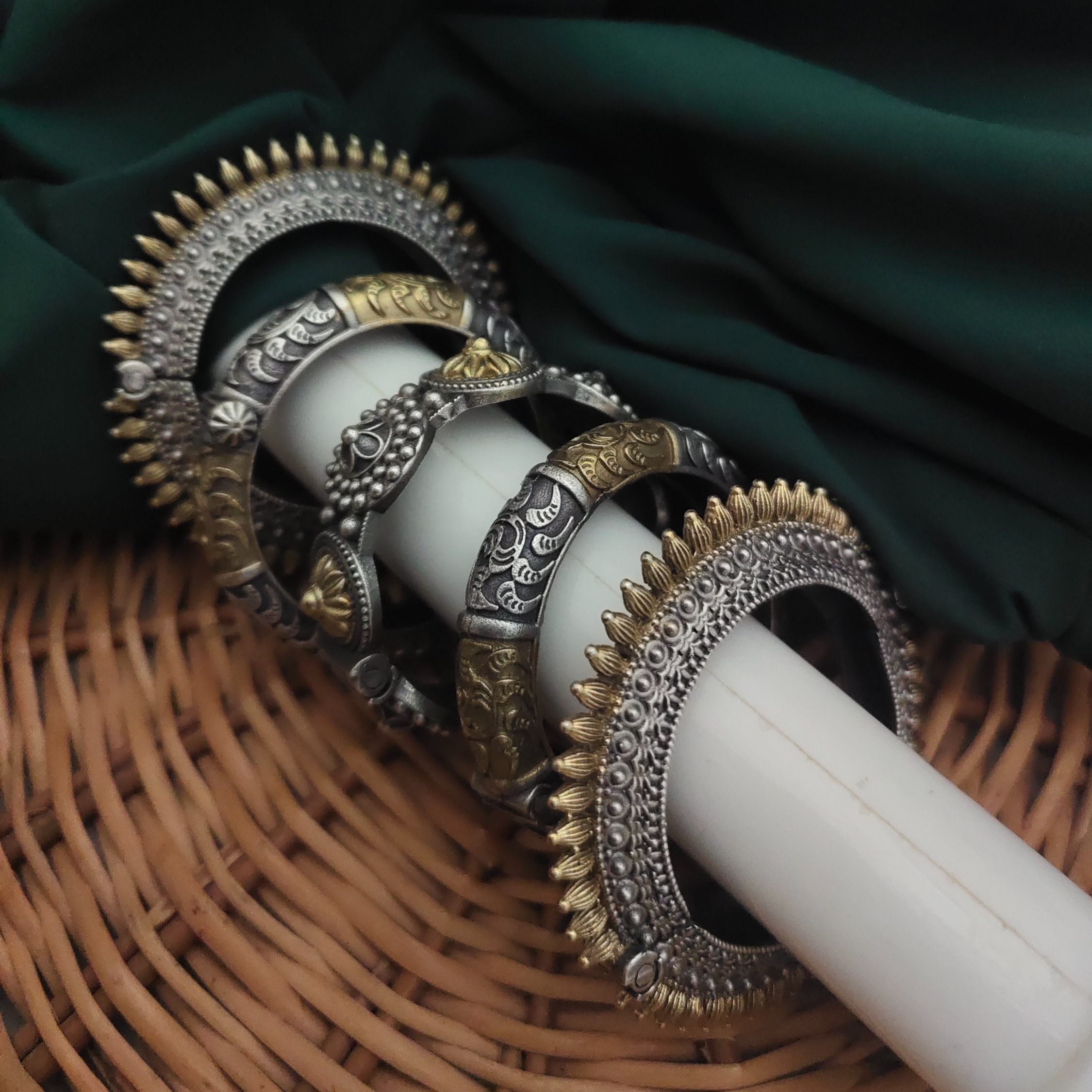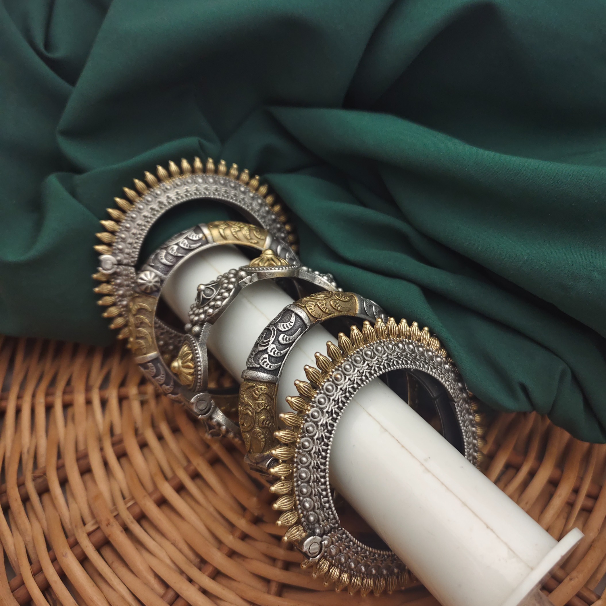 Silver Replica Two tone bangles Set of 5 pc