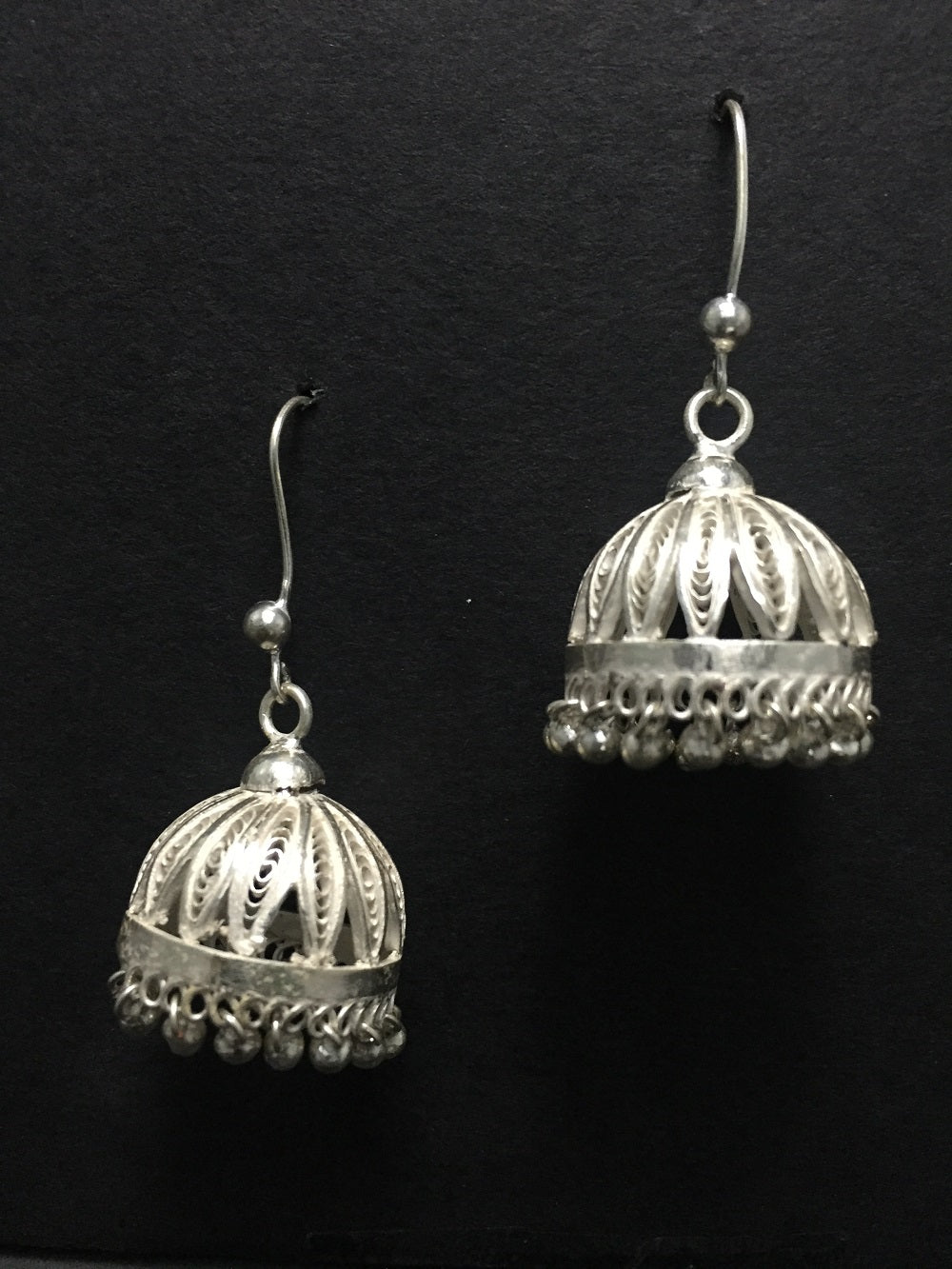 This is an excellent example of Filigree art that Silverlinings stands for. This drop earring is inspired by jewellery box of our moms. The fine balls hanging at the bottom had always intrigued us during our childhood. Wear it with ethnic wears and look graceful!!!