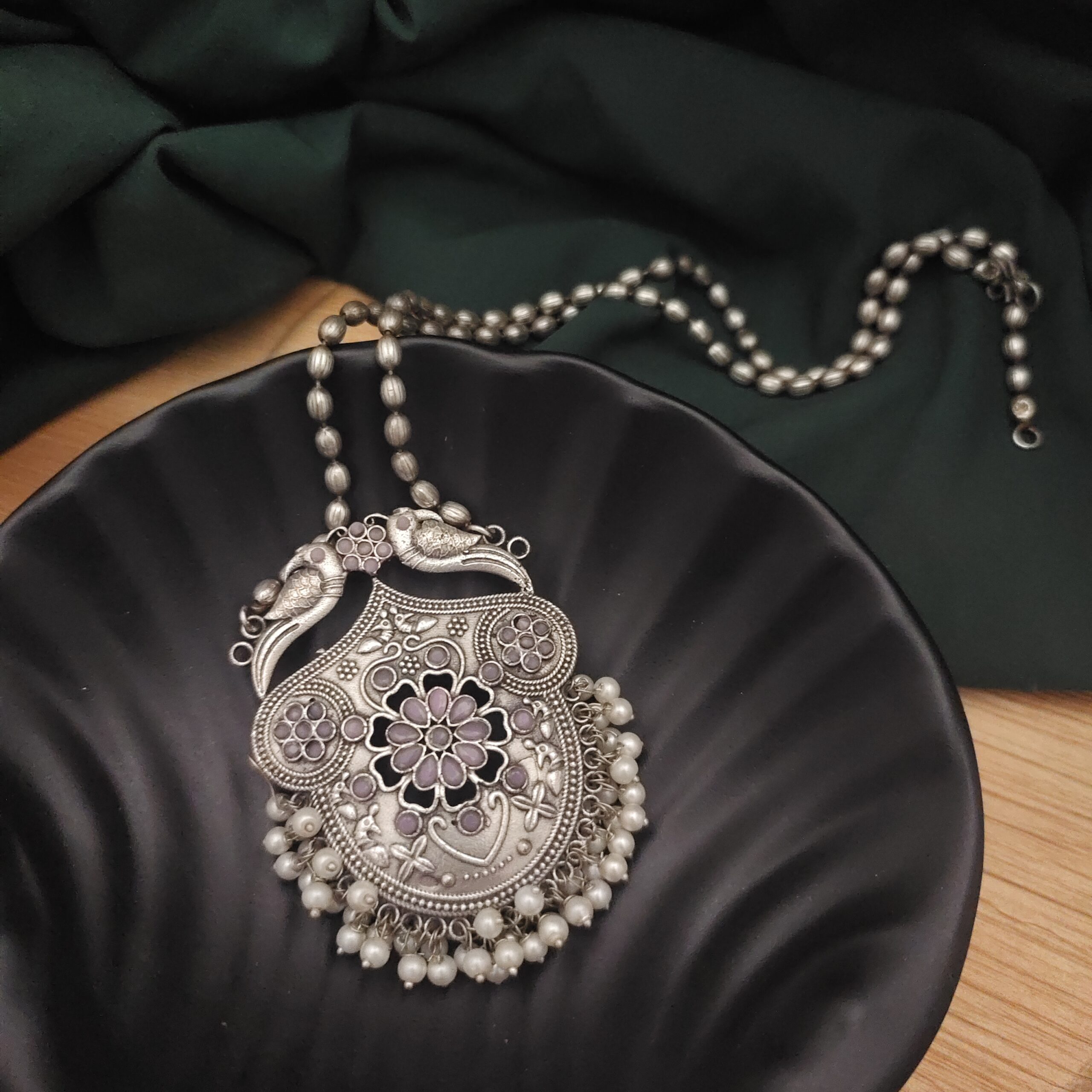 Yashsvi Silver Replica Brass Necklace Earrings Set-Pink